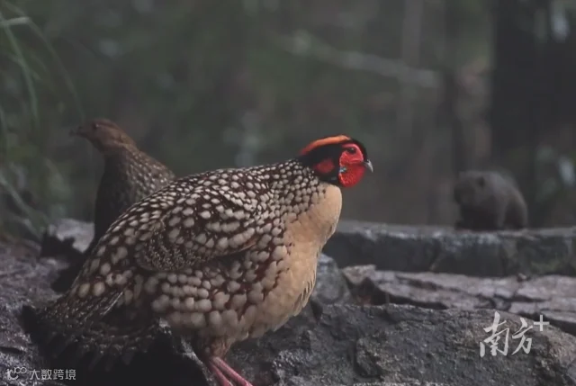 拟建的南岭国家公园还存在被誉为“鸟类大熊猫”的黄腹角雉,它是我国独有珍禽,因雄雉腹部淡黄、头上有两支淡蓝色肉质角求偶时会竖起而得名。