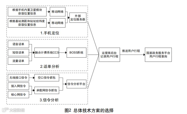 根据该论文,行程卡通过用户手机号的括语音话单、流量话单、手机信令等信息数据汇总,选取与用户行程有关联的字段,计算出用户的连续地市时长,完成数据加工、翻译,最终计算出用户行程,由运营商后台推送给政务服务平台。