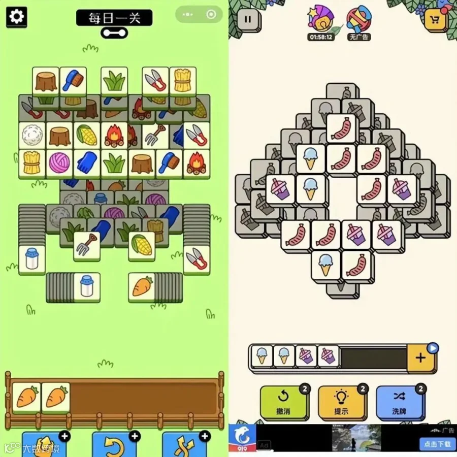 左:《羊了个羊》,右:《3 tiles》