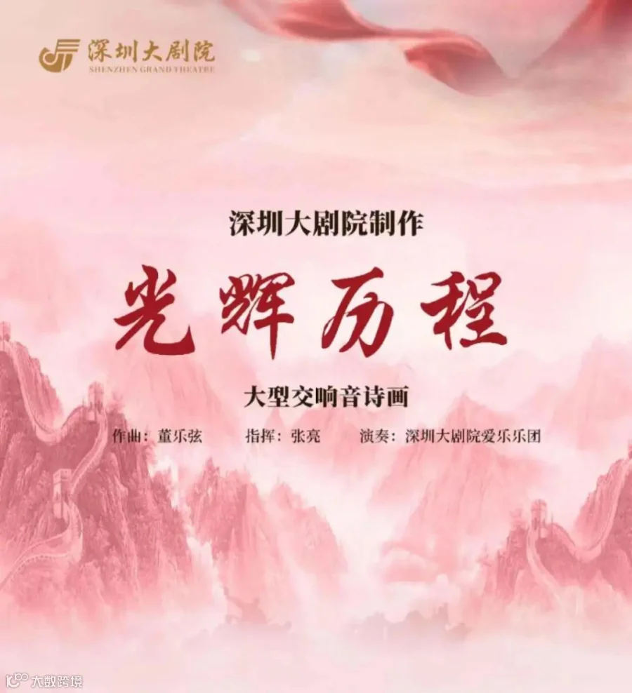 大型交响音诗画《光辉历程》由深圳大剧院爱乐乐团演奏。舞美制作上将艺术与科技紧密融合,通过3D视觉技术的引入,使整部作品的舞台呈现更加多元化的观感体验。作品为观众呈现中国共产党的光辉历程,同时也为深圳原创交响音乐的文化版图增添了浓墨重彩的一笔。相信观众沉浸在音乐诗画中,能够感受到百年宏阔的开篇与振奋砥砺前行的坚定信念。
