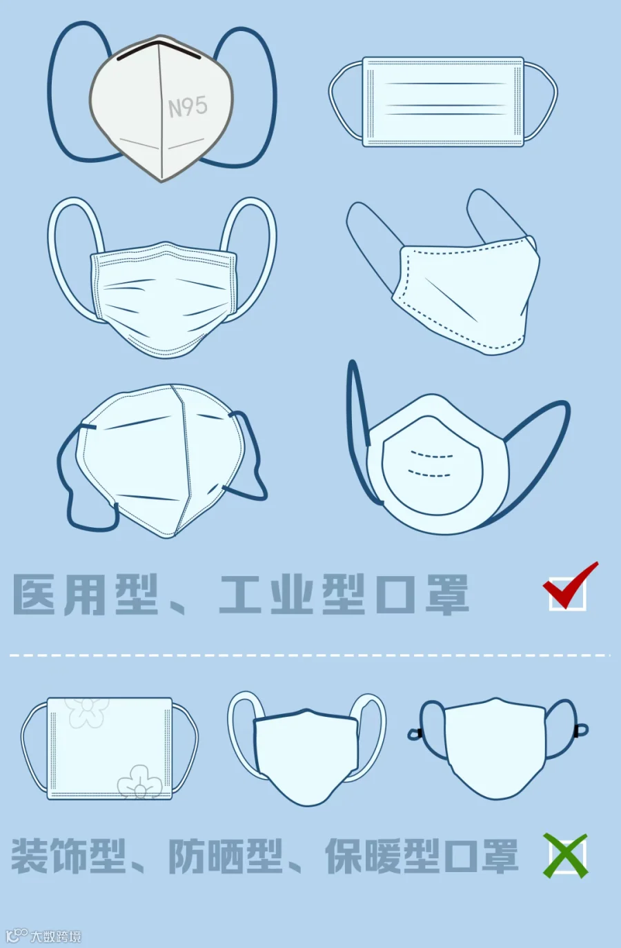 其中,装饰型和防晒、保暖型口罩不建议在疫情防控期间使用,因为不能满足微生物颗粒过滤要求,存在防御疏漏的风险。