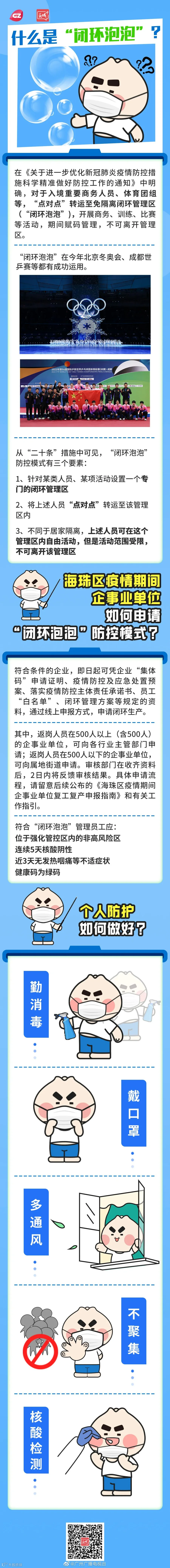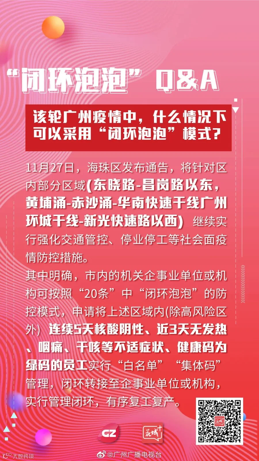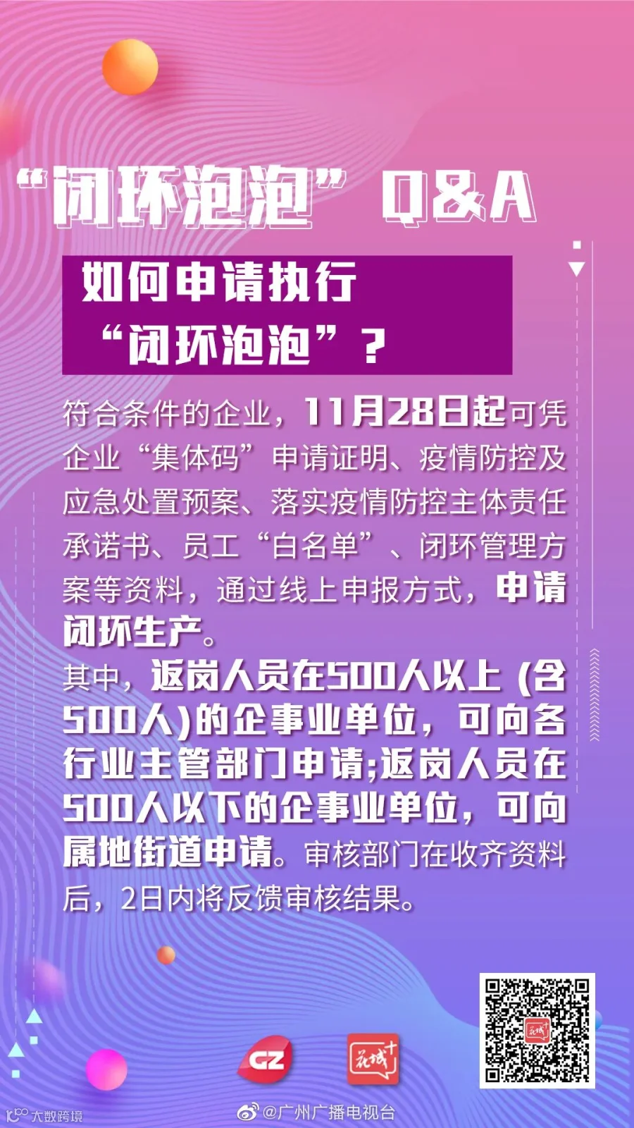在11月28日新闻发布会后公布的《海珠区疫情期间企事业单位复工复产申报指南》(简称“申报指南”)中,对“闭环泡泡”的具体执行提出了指引: