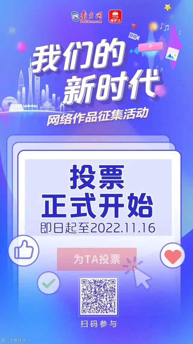 目前,活动投票仍在火热进行中。根据安排,即日起11月16日晚上24时,是本次征集活动的作品投票时间。网友可在活动官方页面或者“粤学习”APP的识趣栏目进入活动页面为喜爱的作品进行投票(投票说明)。投票期间,每人每天可投5票,下载安装“粤学习”APP并打开APP投票,还可额外再投5票。欢迎大家踊跃投票,也可以广泛发动身边的亲朋好友一起来参与。