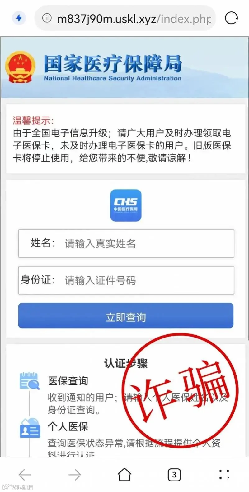 可疑短信使用“医用保疗卡”的障眼说法,让人联想到“医保卡”。实际上,以医保名义行骗,已不是新骗术了。