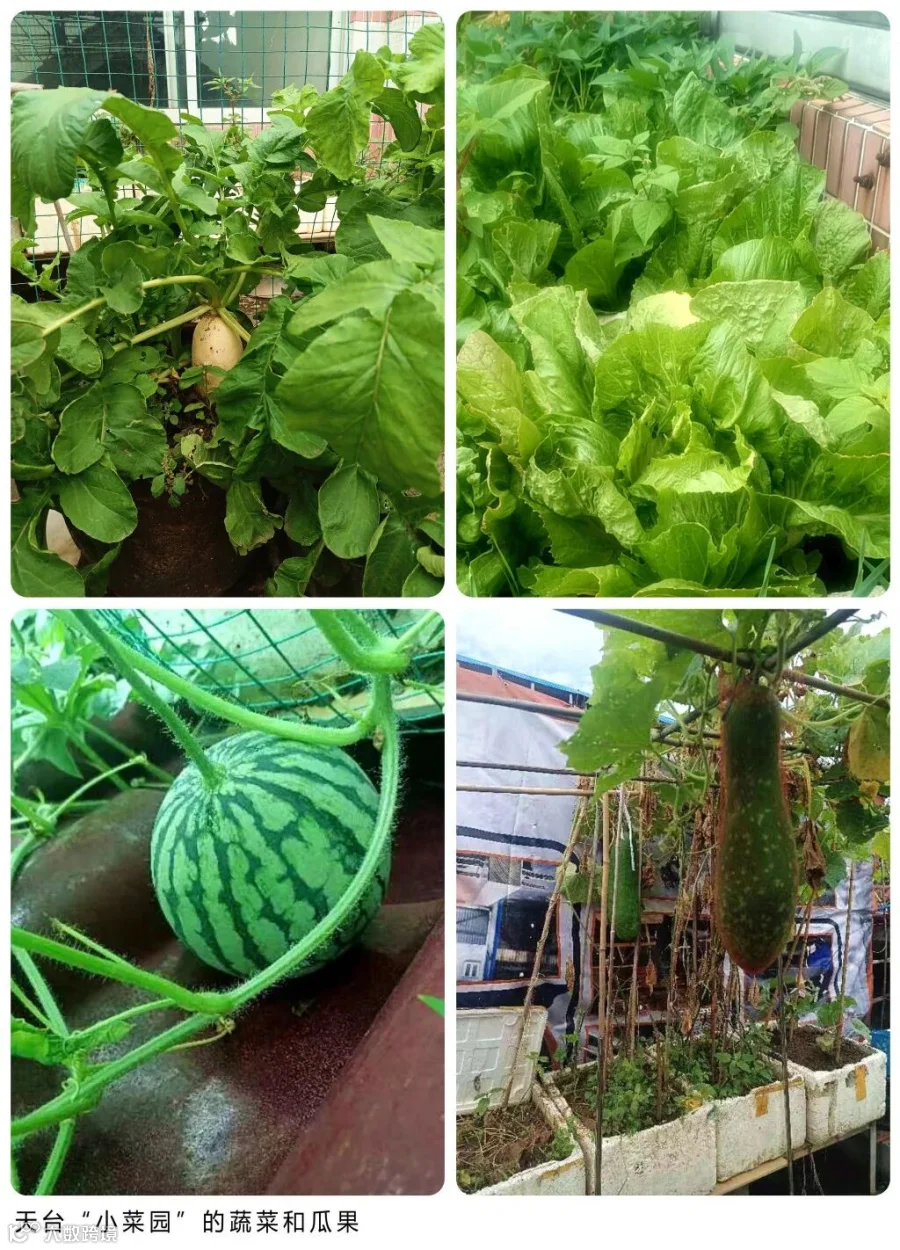 布置地基、购买种子、学习施肥……经过两三年的努力,她用瓷盆和泡沫箱子堆砌出一个闹市中的“小菜园”。