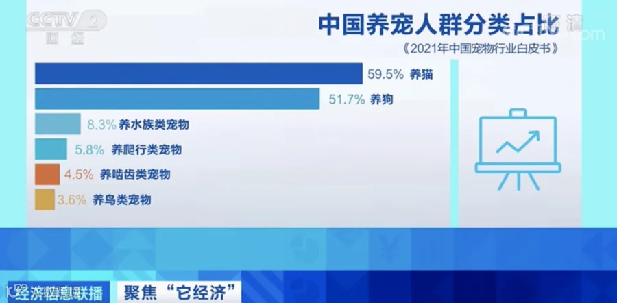 数据显示,截至2021年年末,养宠人群中,养水族类占比8.3%,养爬行类宠物的占比为5.8%;啮齿类占比4.5%;鸟类占比3.6%。