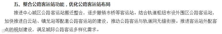推进中心城区公路客运站搬迁整合,逐步撤销市桥等客运站。结合轨道枢纽布设外围区公路客运站,加快推进白云站、镇龙站等配套公路客运站的建设,推动公路客运与轨道网无缝衔接。推进客运站外配客点的规划建设,满足城际公路客运多样化需求。