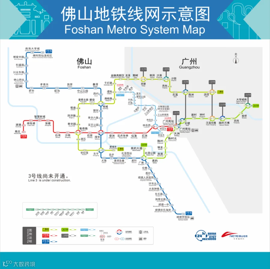 即将开通的佛山地铁3号线首通段全长40.72km,共设22座车站,其中地下站20座,高架站2座。