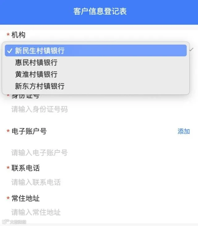 禹州新民生村镇银行发布的信息登记表显示,客户在登记信息时首先要选择存款机构,除了要填写个人基础信息外,还应填写相关“产品信息”,包括交易时间、交易金额、产品名称、产品期限、产品年利率、交易渠道、已获取收益、获取收益方式、获取产品方式,以及是否存在通过其他渠道获取收益。