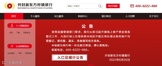 开封新东方村镇银行官网公告