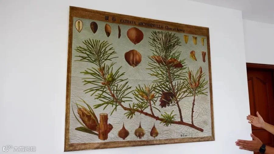 在这里,我们还见到了标本馆的镇馆之宝——银杉。银杉被称为植物界“活化石”,是我国特有的珍稀树种,它树形挺拔,仪态高雅,刚健秀丽,叶子下有两条银白色的气孔带。轻风吹拂下,叶片银光闪闪,格外动人。它于1956年在广西被首次采集,1957年由我国植物分类学家陈焕镛、匡可任教授命名发表。一经发表,顿时轰动学界。