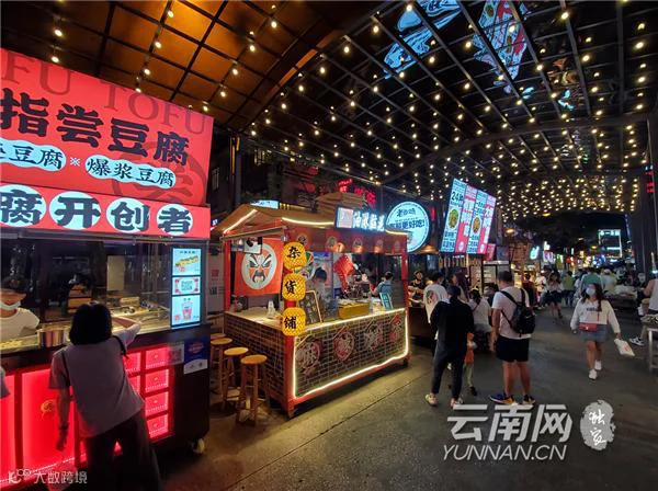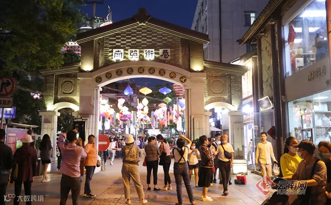 入夜,昆明市中心的南强街巷人头攒动、热闹非凡。