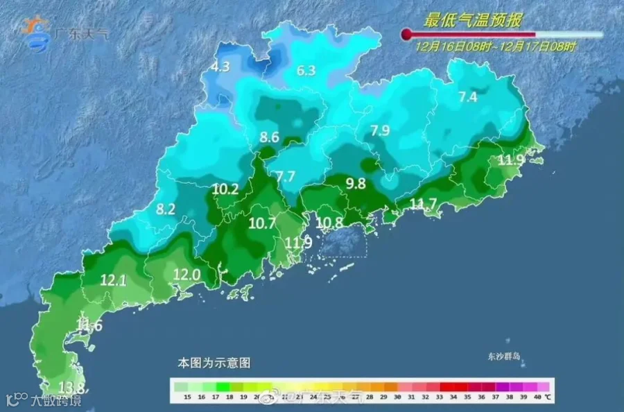 17日,广东省大部多云转晴。最低气温:粤北1℃~4℃(高寒山区零下1℃~1℃),南部市县7℃~10℃,其余市县4℃~7℃。