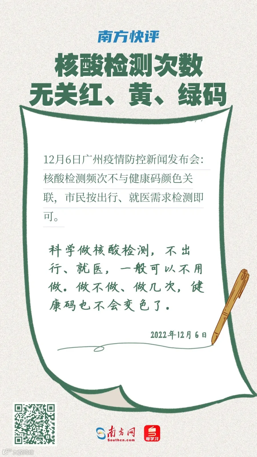 除上述情况外,其他单位及场所凭健康码绿码通行,不能层层加码查验核酸检测结果;核酸检测频次不与健康码颜色关联,市民按出行、就医需求检测即可。