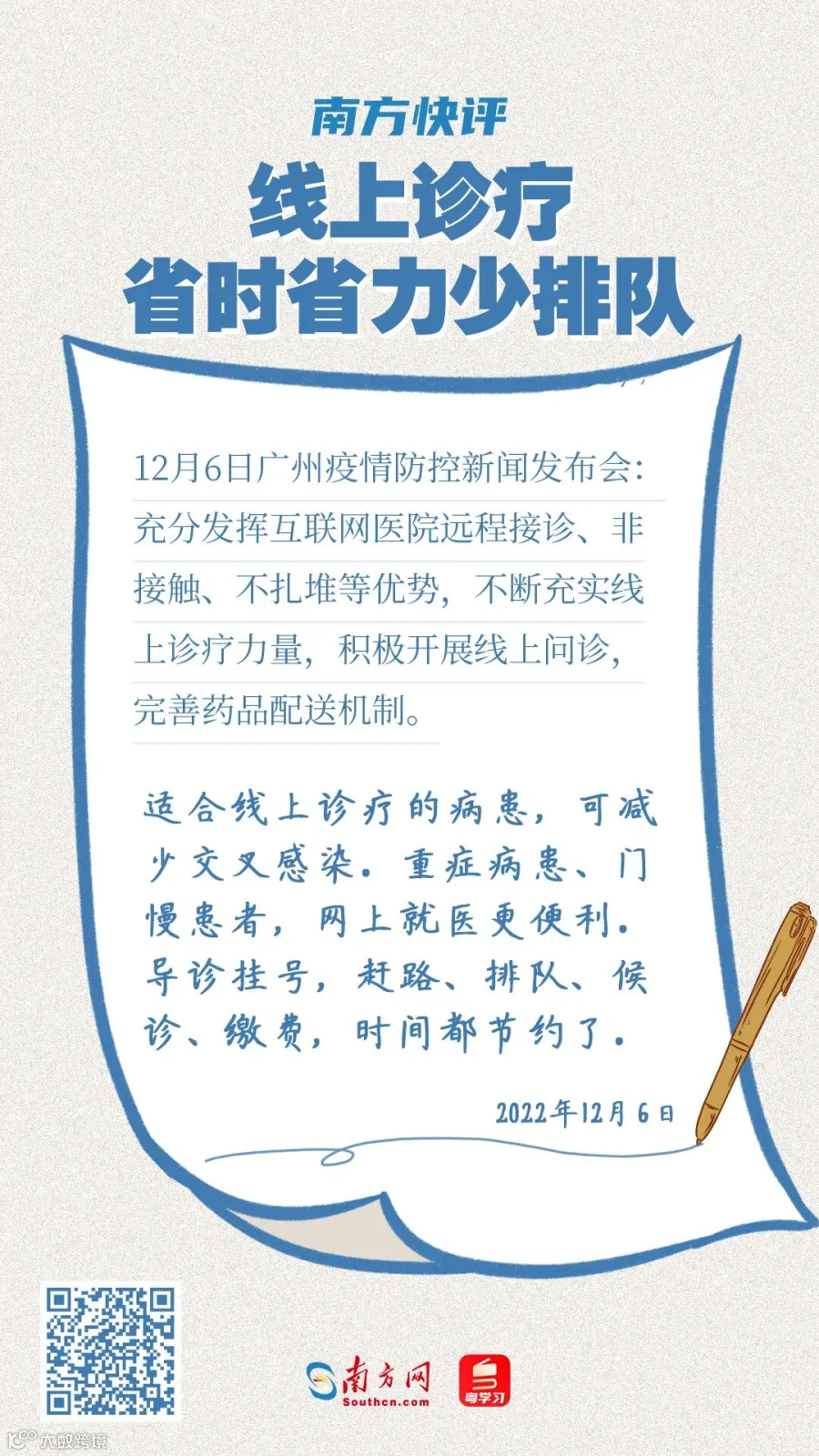 广大市民朋友近期如有非紧急就医需求,请优先选择互联网医院或就近到基层医疗卫生机构就诊。10月20日以来,广州地区互联网医院在线诊疗27.07万人次,开具电子处方1.53万张,治疗药物通过快递快速寄达患者手中。
