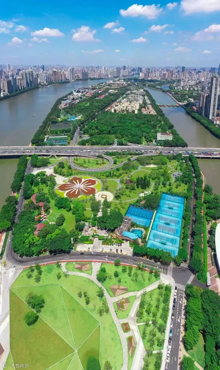 二沙岛艺术公园周边有广州塔、海心沙、珠江新城、海心桥等,景观最有新时代广州特色。