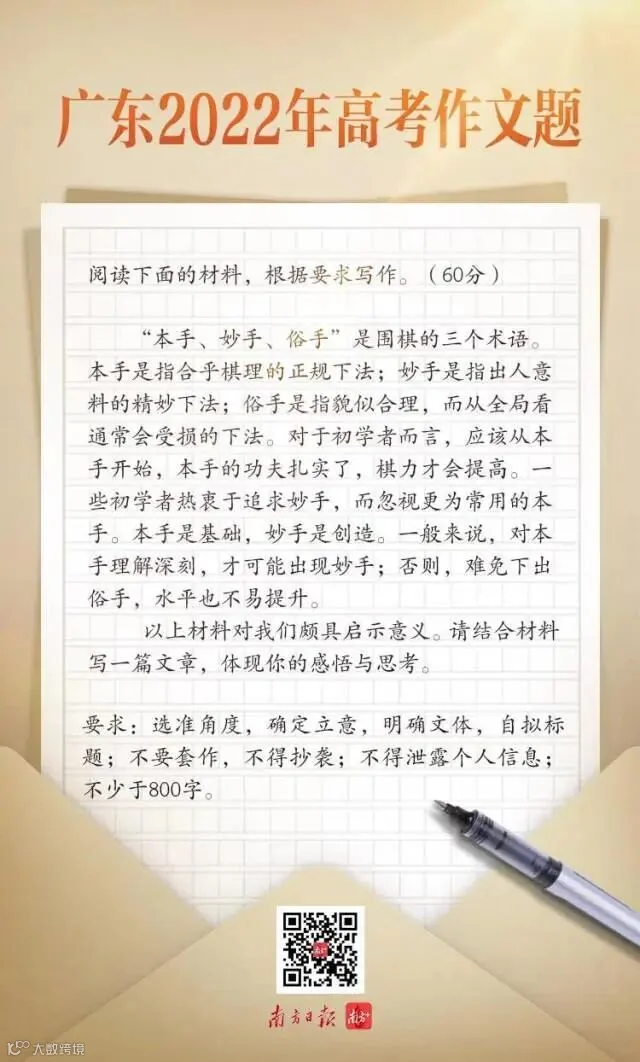 又逢高考日,备受关注的2022年广东高考作文题目新鲜出炉: