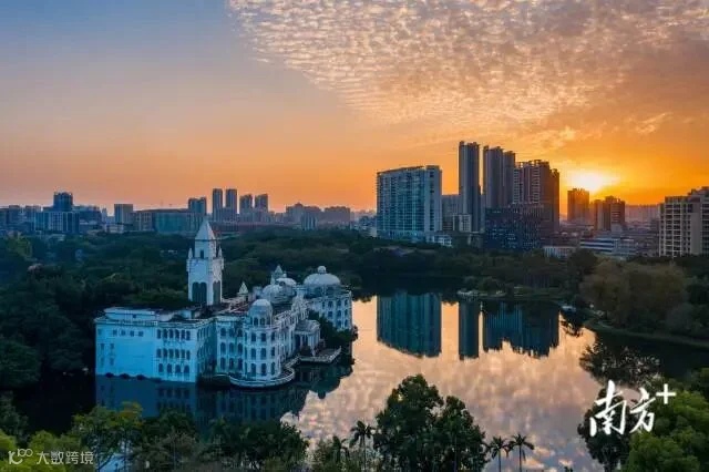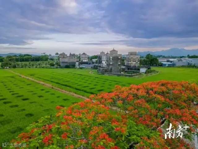 山雾缭绕,霞光照眼,雨后如洗的岭南大地到处一片碧空祥云,美不胜收。凤凰花开,柚树成长,菱角收获,渔工俱足,美景之下也蕴含着蓬勃的生机和欣欣向荣的力量。