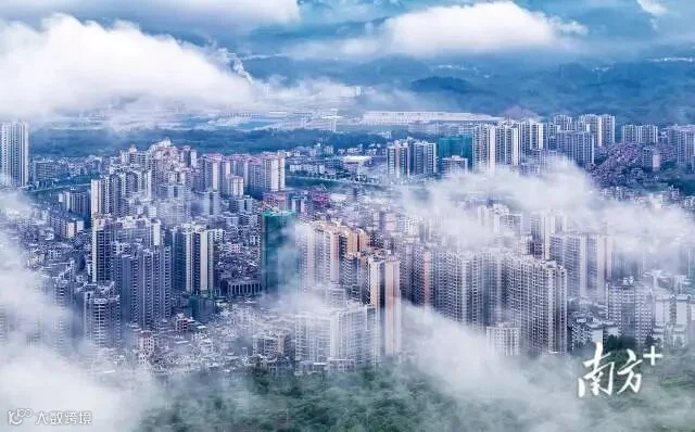 5月14日早上,清远连州市雨后云雾缭绕,高楼若隐若现。罗敏 摄