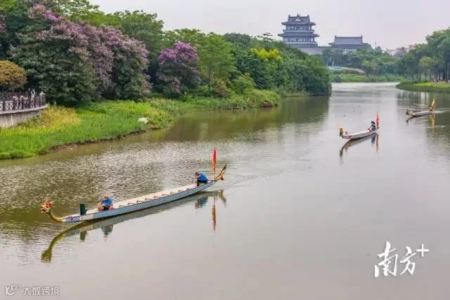 5月22日,广州海珠湖,龙舟爱好者在湖上划龙舟。生而幸之 摄