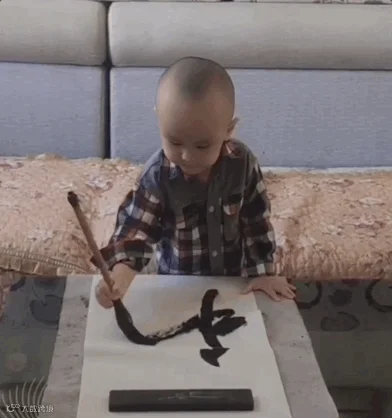孩子妈妈称,自己写书法时