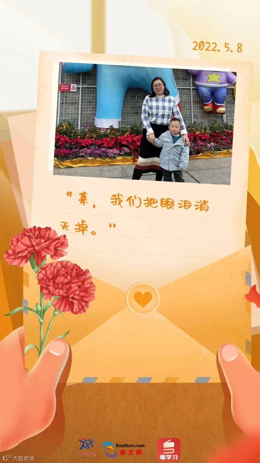 而被家人“打小报告”,说昨晚偷偷抹眼泪说想妈妈的臭小子,这时却淡定地说:“妈妈别哭了,我不就在这里嘛”,说罢还伸出小手给妈妈擦着眼泪“来,我们把眼泪消灭掉。”