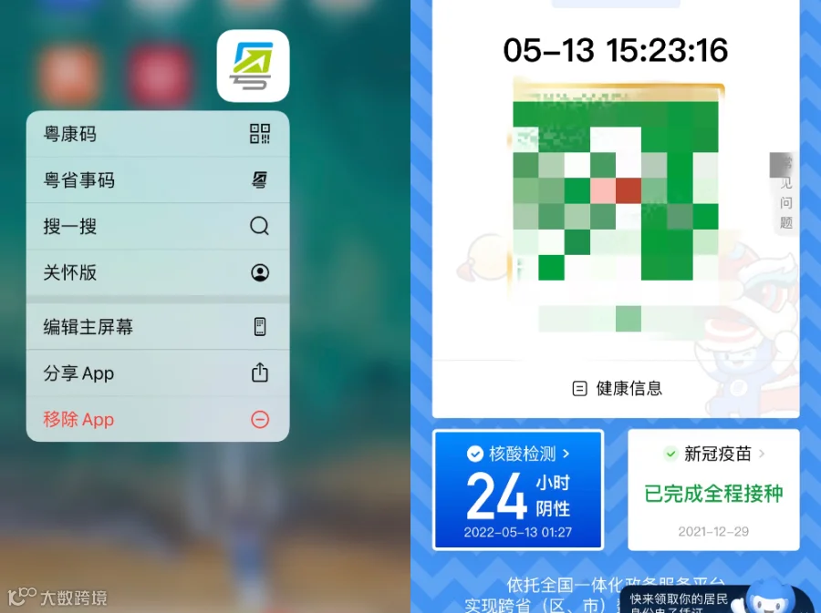 粤省事APP开发出“一键亮码”功能。用户在手机桌面直接长按粤省事APP图标即可一键亮码和扫码。
