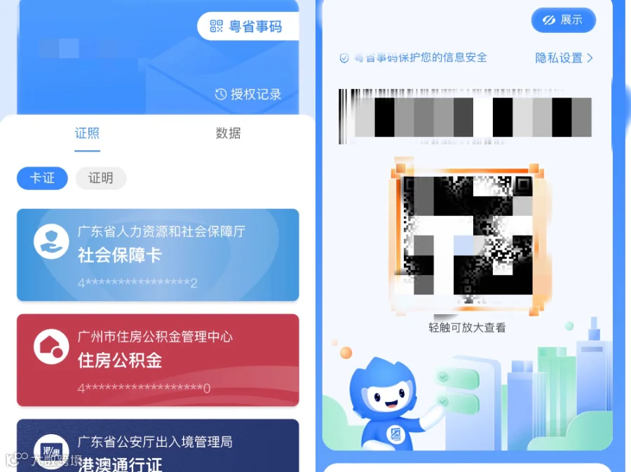“粤省事码”是粤省事平台的个人服务二维码,实现“一码通行”,目前已覆盖政务大厅免证办事、酒店民宿一键亮码入住,图书馆、博物馆扫码进场等32个使用场景。