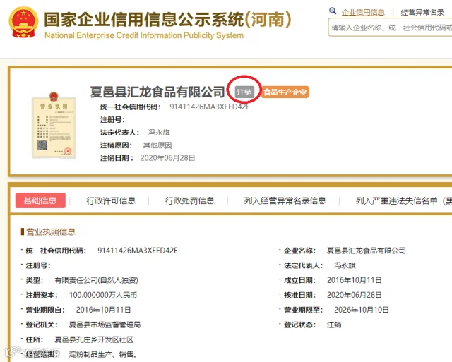 闵行:粉丝生产企业已注销?