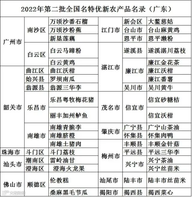 广东有36个产品入选2022年第二批全国名特优新农产品名录