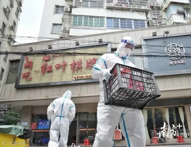 人员摸底、上门测核酸、跑楼送物资、协助消杀、转运垃圾……每天早上7点,在封控楼前,白云区棠景街道办的工作人员开始了一天的工作。