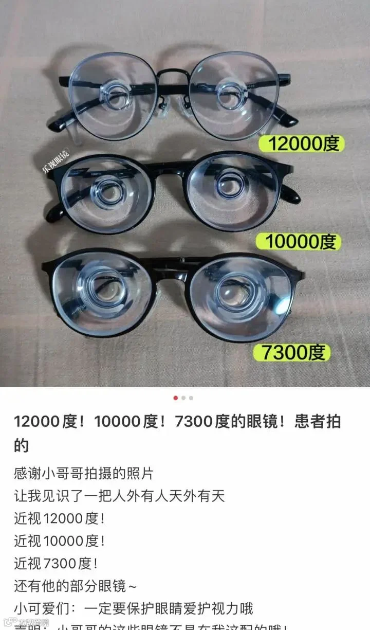 浙江省眼科医院高度近视专科医生傅映晖表示:“从理论上来说,近视12000度是存在的,一般来说这种视力会伴随着其他疾病。”她说,在门诊中近视三四千度的也并不罕见。