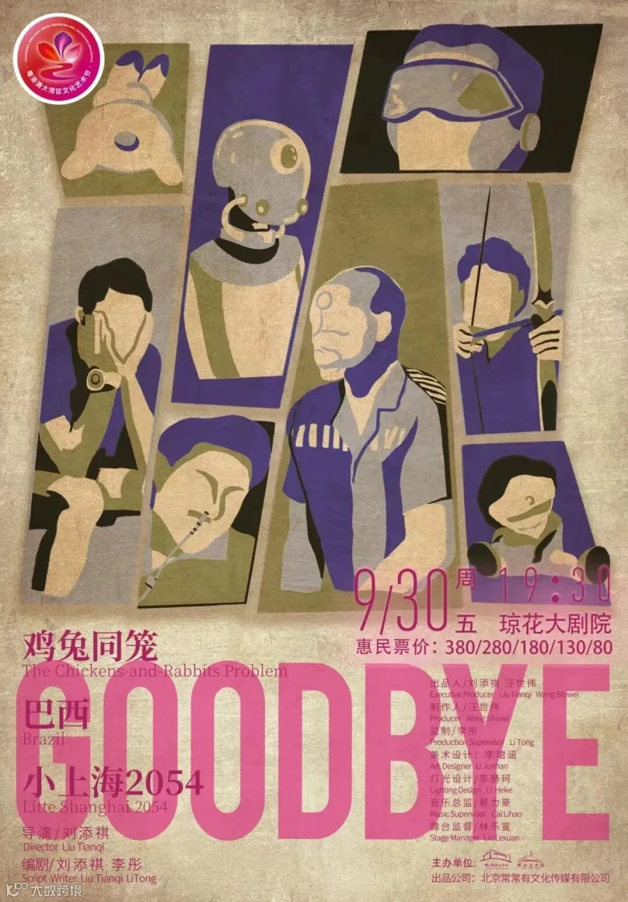 话剧作品《GOODBYE》三部曲包括《鸡兔同笼》《巴西Brazil》,以及新作《小上海2054》话剧三个情境,三段故事,从生活多个角度,阐述同一个内核,诠释“告别”的重量。《鸡兔同笼》讲的是亲情的告别,《巴西》讲的是生命的告别,《小上海2054》则是从友情的告别切入,一如他以往的作品,细腻、柔软、温情又残酷。
