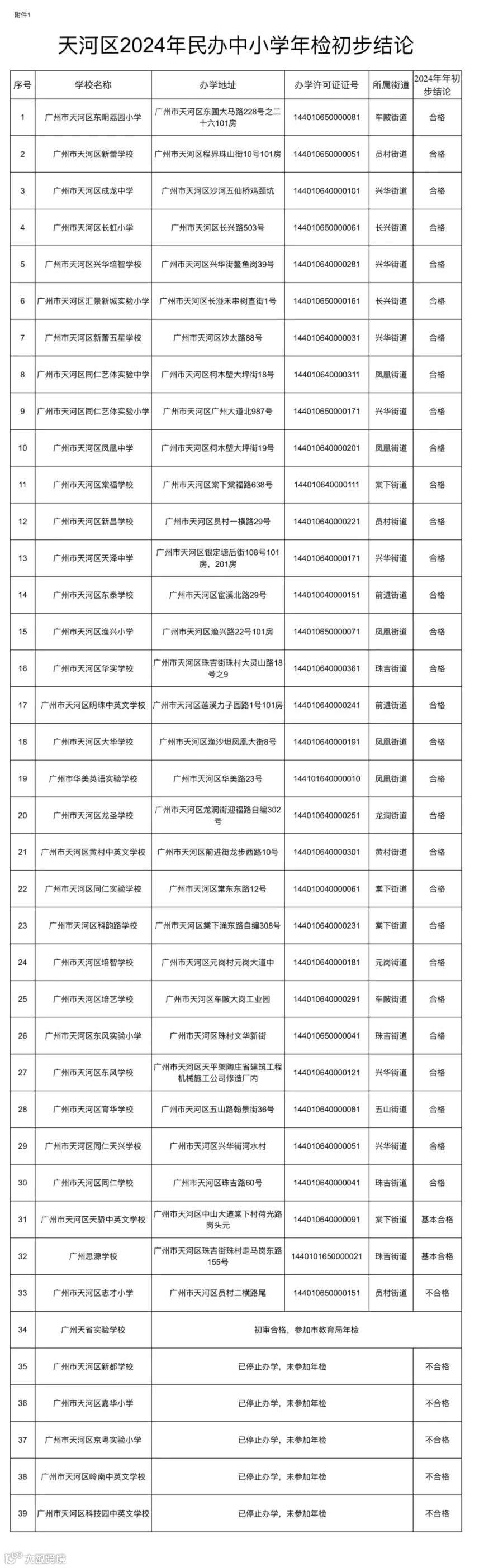 近日,广州市天河区教育局对该区民办学校(含民办中小学、幼儿园、培训机构)2024年度年检初步结论予以公示。公示结果显示,天河区内共有5所民办中小学、25所民办幼儿园已停止办学。
