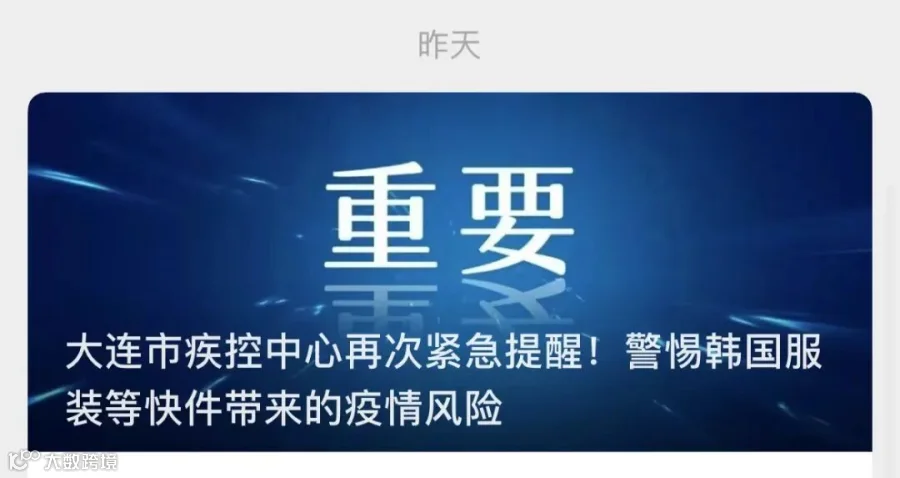 4月2日,辽宁大连新冠肺炎疫情防控总指挥部通报,4月1日大连市新增的1例阳性感染者基因序列为Omicron变异株(BA.2进化分支),与本轮疫情和既往本土及境外输入病毒毒株不同源。该阳性感染者为经营韩国进口服装商店店员,经对其经营的韩国进口服装、包装袋内表面检测出新冠病毒核酸单基因阳性。通报指出,不排除因接触被新冠病毒污染的进口物品感染的可能。