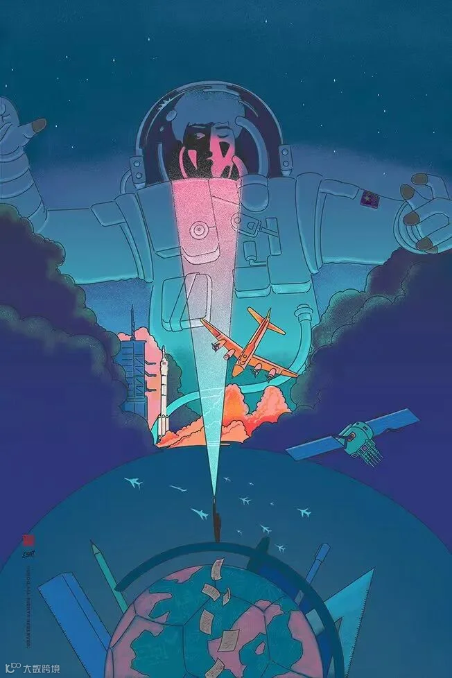 Cartoonist Chahua Chouchou (@插画丑丑) produced two space-themed paintings to pay tribute to the three Chinese astronauts of the Shenzhou-13 manned spaceship and welcome them home.