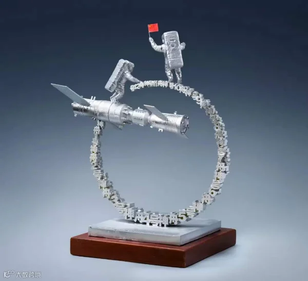 广州雕塑院院长许鸿飞也创作了反映我国航天壮举的雕塑作品《九天逐梦》,用艺术致敬中国航天事业。去年7月,许鸿飞受到航天员出仓进行“太空行走”的瞬间激发了创作灵感,经过走访调研,历时一个月创作出了《九天逐梦》这件作品。