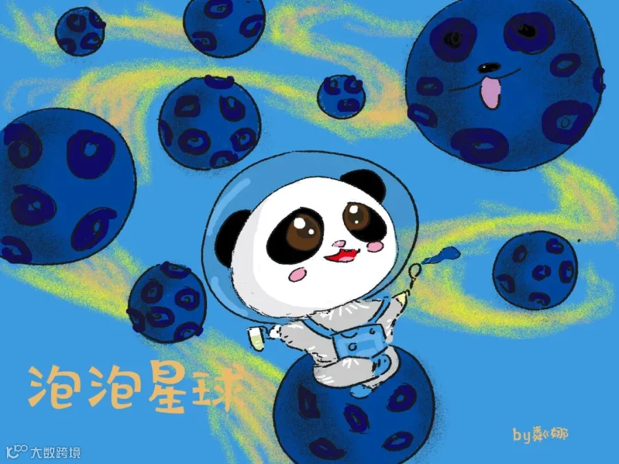 在漫画家@粼娜的作品《泡泡星球》中,心怀太空梦的小熊猫,用手中的泡泡棒,吹出一个又一个泡泡星球,在浩瀚太空中去发掘、去探秘,以此致敬太空探险者。