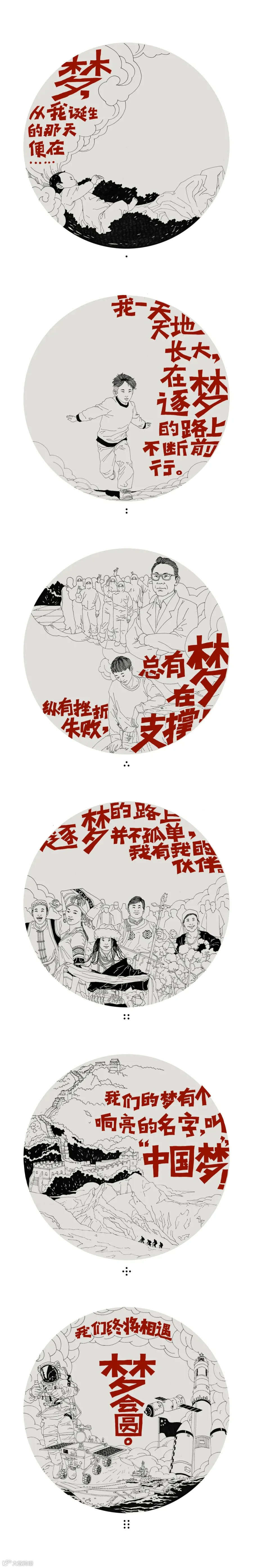 Artist Chen Dong applied circles in the composition of his paintings "Chinese Dream", which pays homage to people who fight against the pandemic, contribute to the development of China's space industry, and so on. He believes that as long as we work together with one heart, we can realize the nation's enduring dream of flying in space and the Chinese Dream.