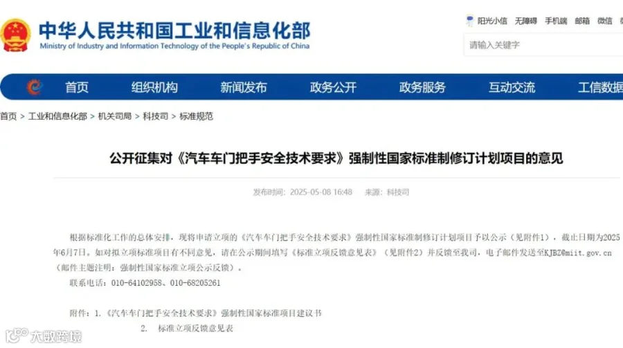 当流线美学碰撞安全刚需,孰轻孰重应是一目了然。近日,工业和信息化部公开征集对《汽车车门把手安全技术要求》强制性国家标准制修订计划项目的意见,就拟对电动式、隐藏式车门把手的布置、标志、安全功能、结构强度等作出规定。车门把手设计将在“生命至上”的准则下,重新诠释“安全第一”这最为底层的逻辑。