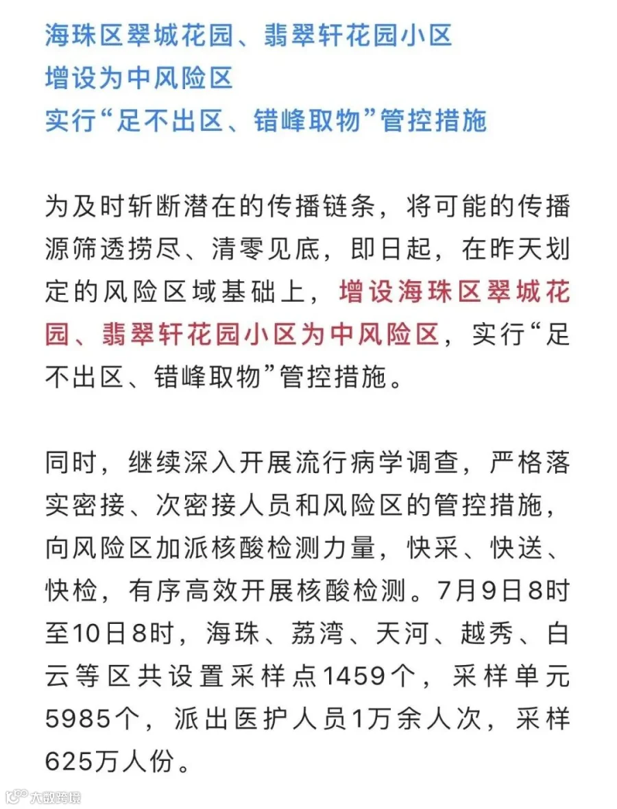 最新!广州核酸采样250.8万份均为阴性,这些地方划定为中高风险区