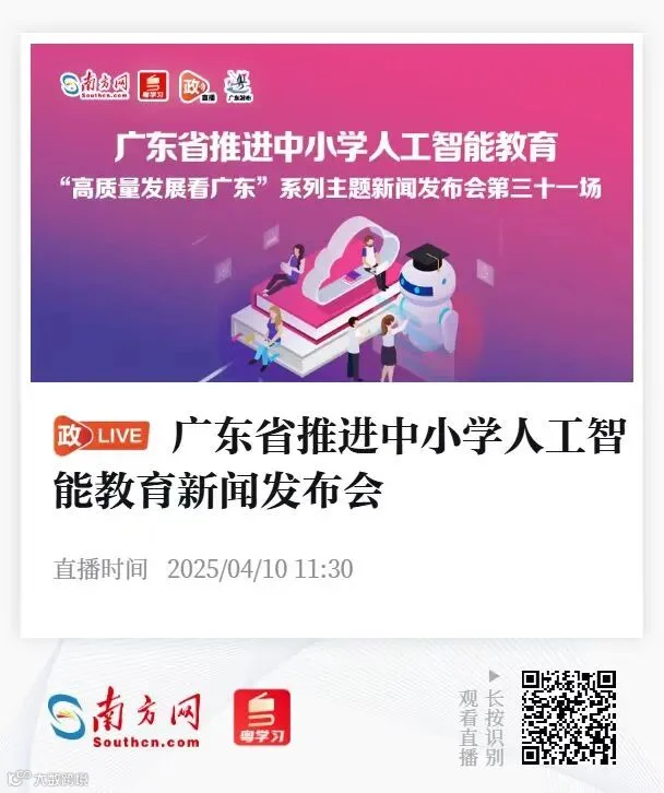 广东省委教育工委书记,省教育厅党组书记、厅长林如鹏表示,“2+1”方案在全国率先提出中小学师生人工智能素养框架,尤其是《广东省中小学教师人工智能素养框架(试行)》(简称《教师素养框架》),从意识理念、技术能力、教育应用、专业发展以及社会责任五大维度分别回答了智能时代教师的职业使命、必备能力与责任担当,为广东中小学教师系统提升人工智能素养提供了指引。