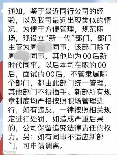 将00后员工全部收纳其中进行统一管理