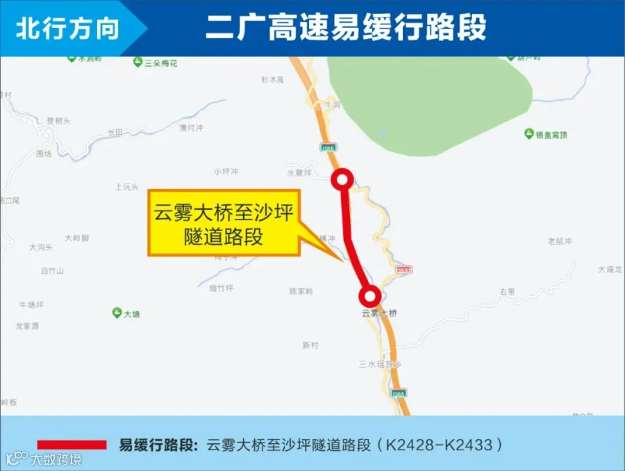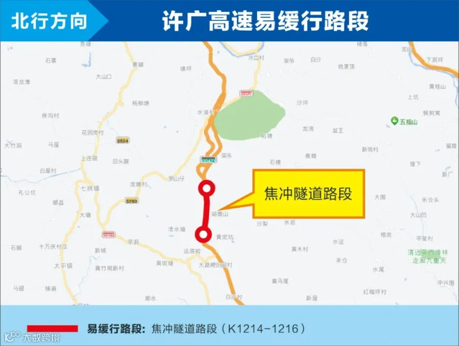 3.乐广高速隧道群(K23至K47)路段:连续24公路桥隧相连路段,隧道没有应急车道、视线差,容易发生追尾二次事故。