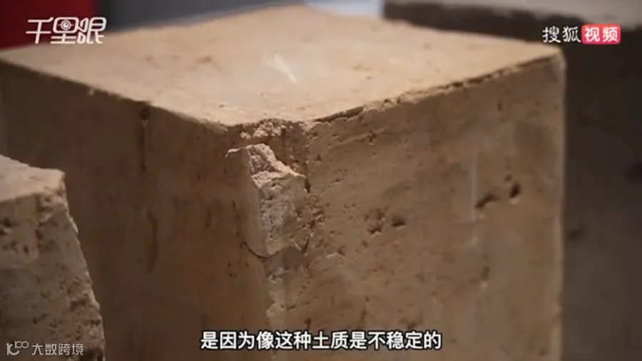 从网友发布的图片中可以看到,考古博物馆一楼展厅内陈列着一些切成立方体的土块,土块上存在明显的缺角、开裂以及人为划痕。