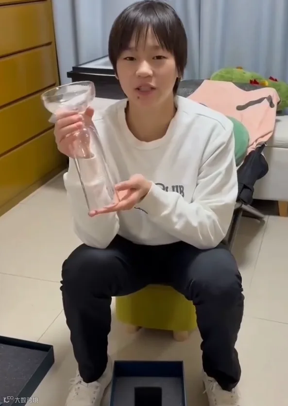 并晒出她拆奖杯的视频