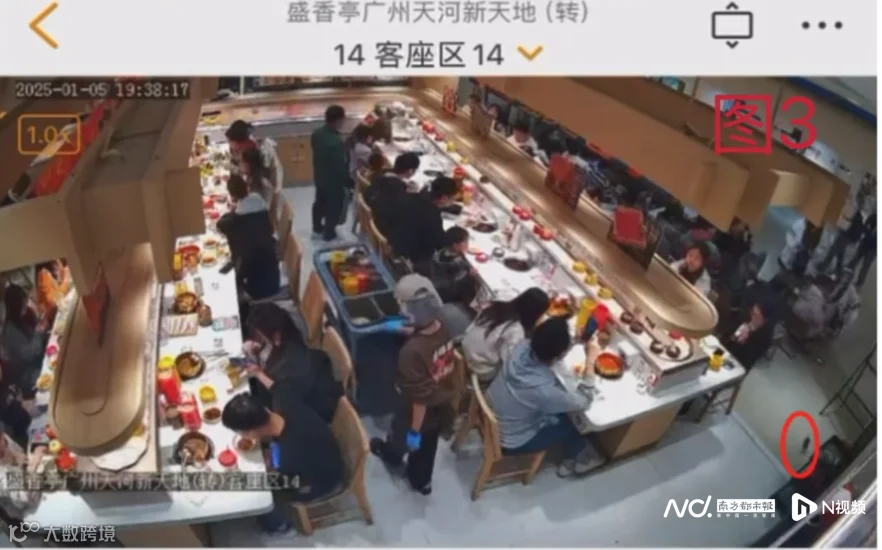 标圆处为老鼠,疑似从门店外跑入。盛香亭方提供的监控图