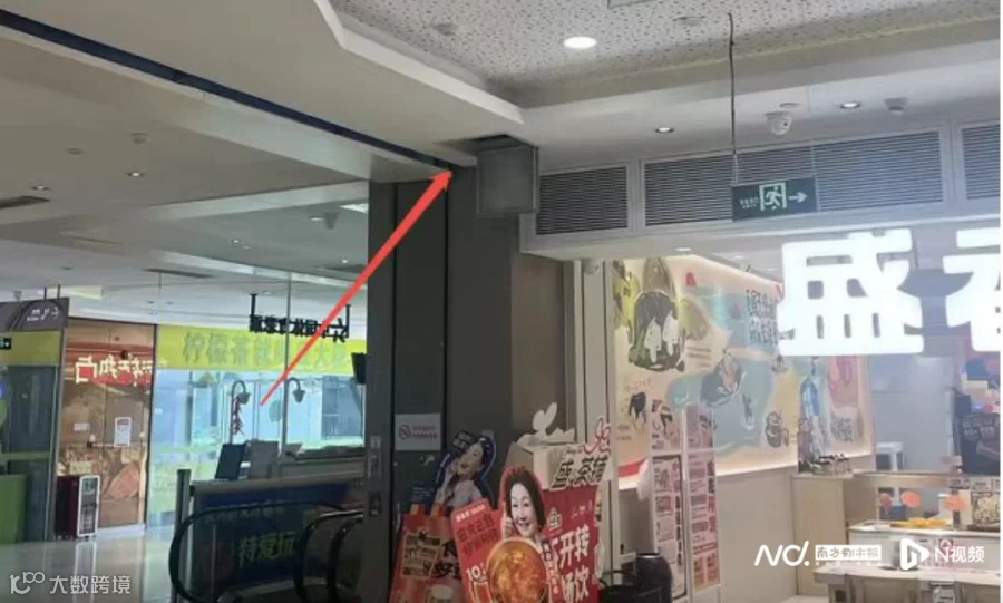 涉事门店门口处天花板存在孔洞。盛香亭方供图