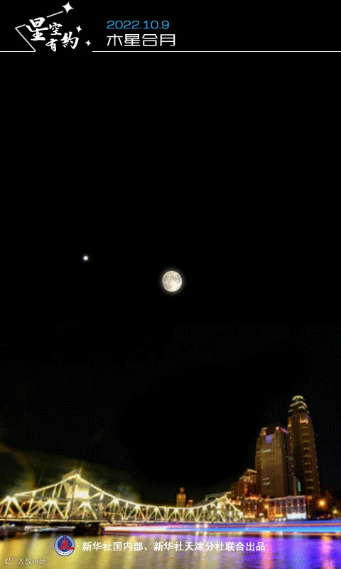 今年9月11日曾发生过一次木星合月,熠熠生辉的木星与一轮农历八月十六的圆月在天宇近距离相伴,交相辉映,助兴中秋假期,烘托节日气氛;10月9日木星再次迎来合月,木星的亮度相比上个月更加明亮,而月相是农历九月十三。由于农历九月的满月发生在十五,这晚的月亮肉眼看上去是一轮接近圆月的凸月。
