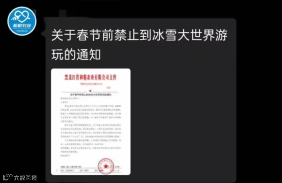春节前禁止员工到冰雪大世界游玩的通知